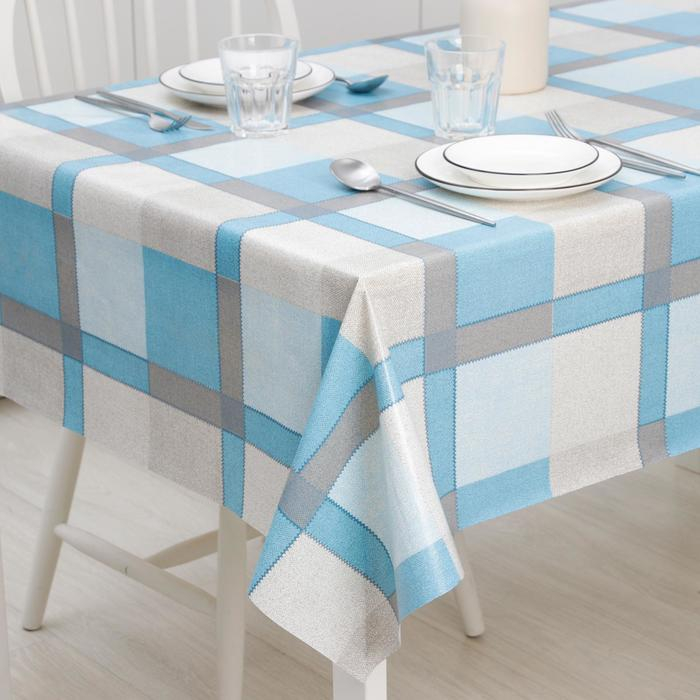 Клеёнка столовая на нетканой основе «Клетка голубая», ширина 130 см, рулон 25 м