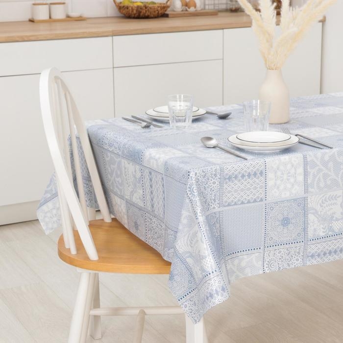 Клеёнка столовая на нетканой основе «Мажор. Ажур», 1,35×20 м, цвет голубой