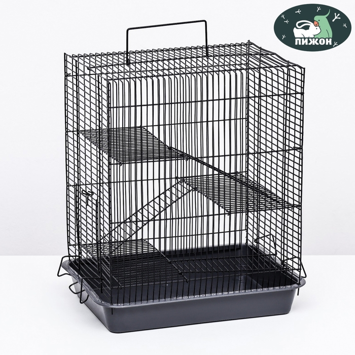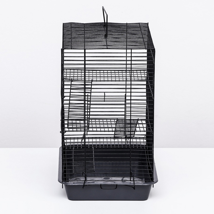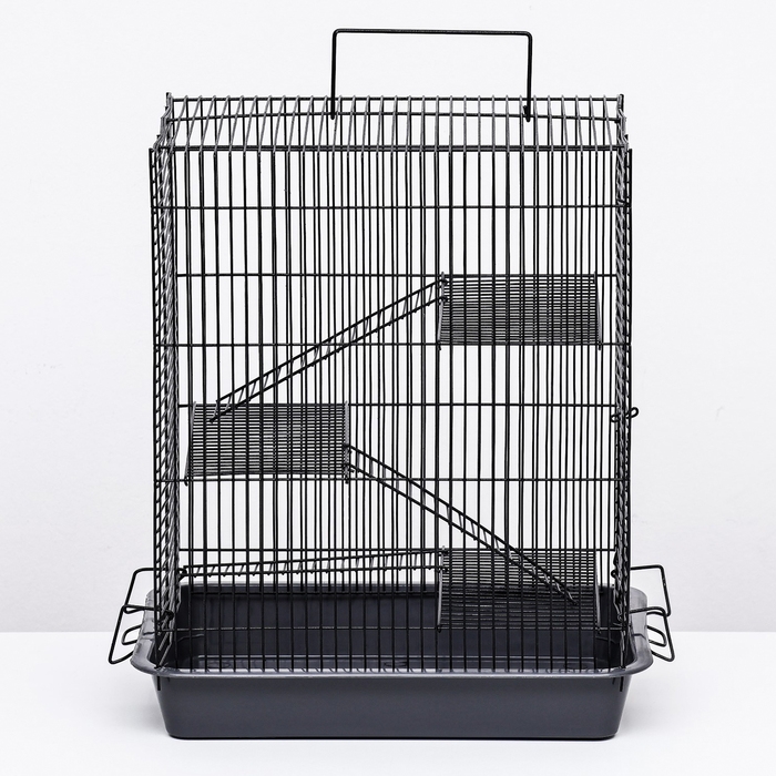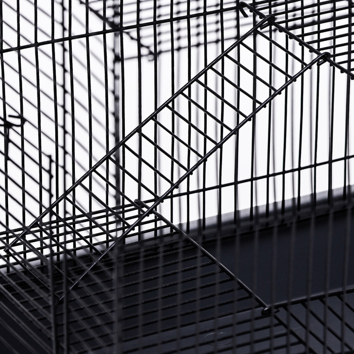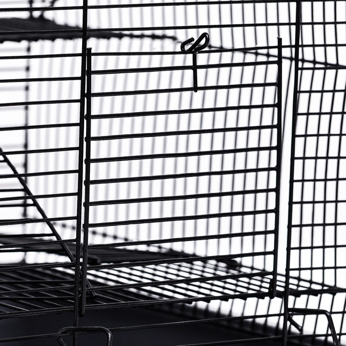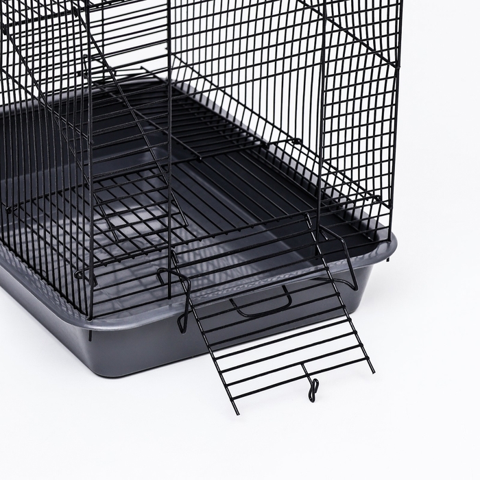 В данной клетке предусмотрено три уровня, что обеспечивает животному дополнительное пространство для активности и отдыха.