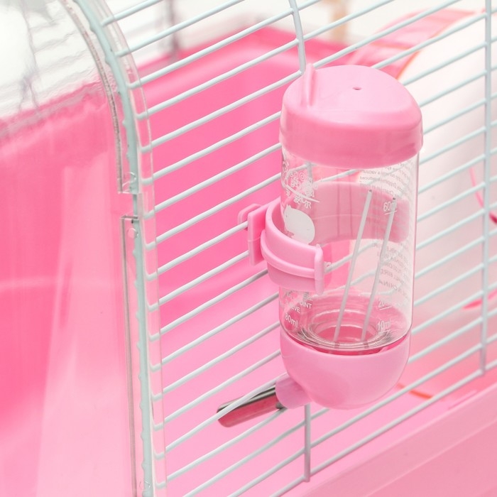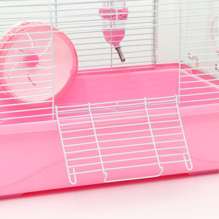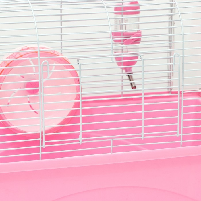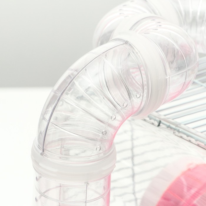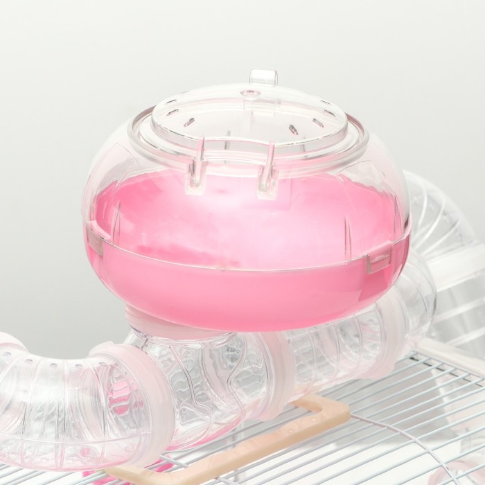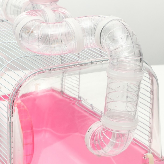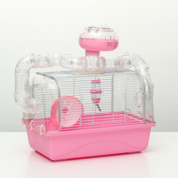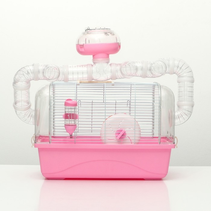 Клетка для грызунов с туннелем, выносным домиком и наполнением, 47 х 30 х 38, см, розовая