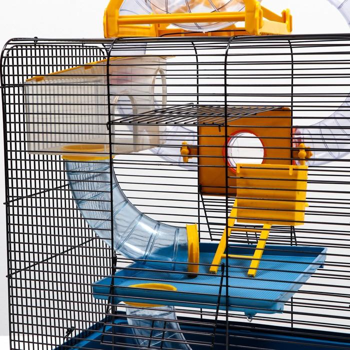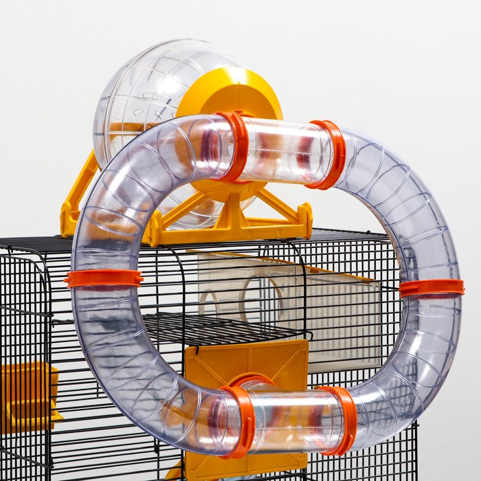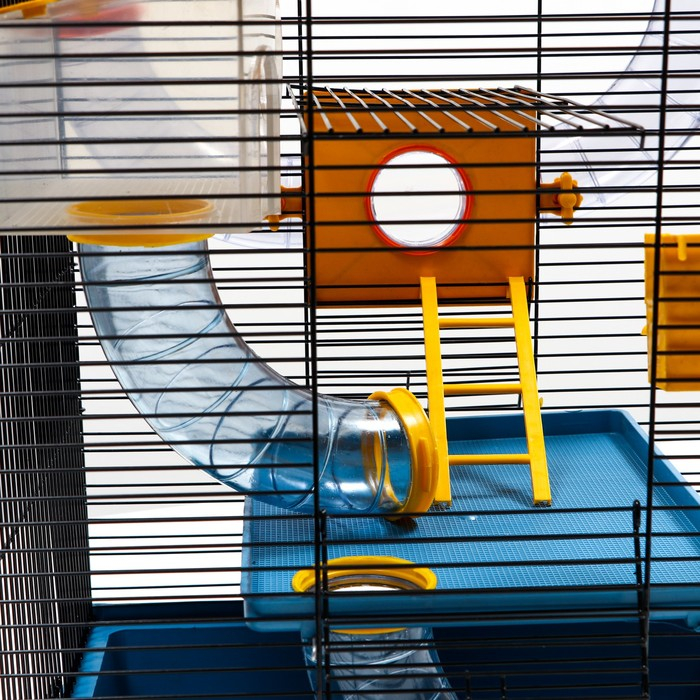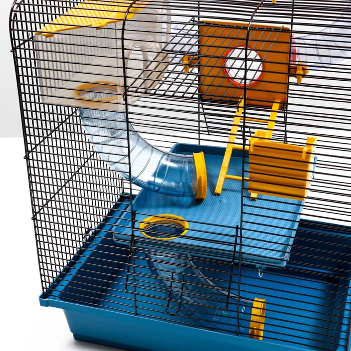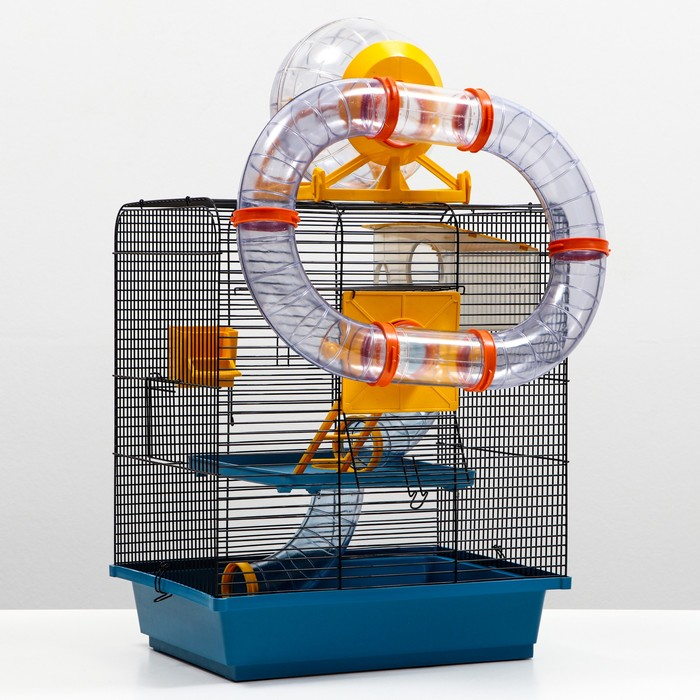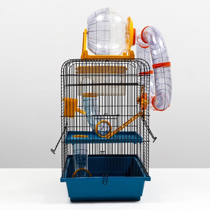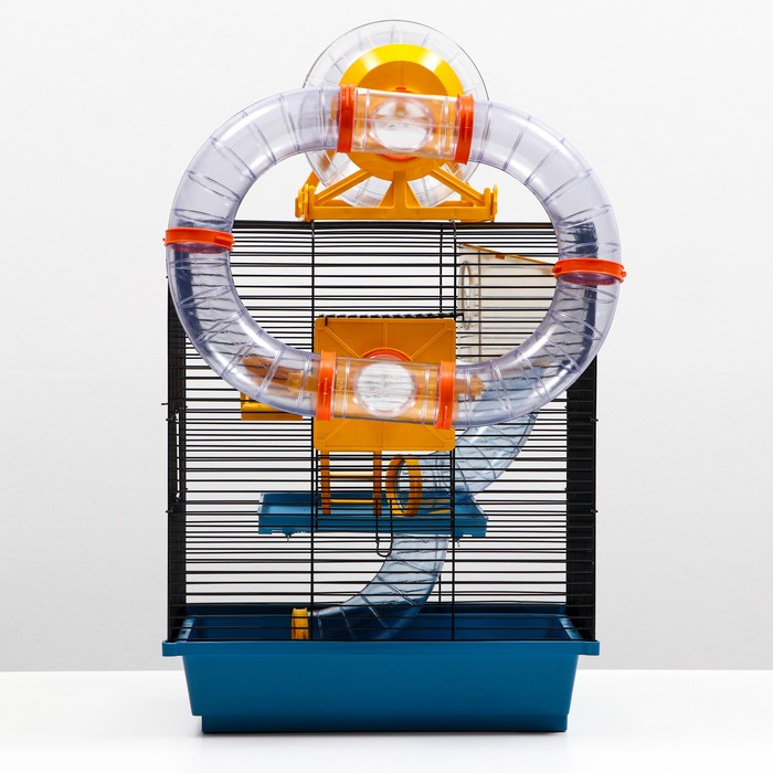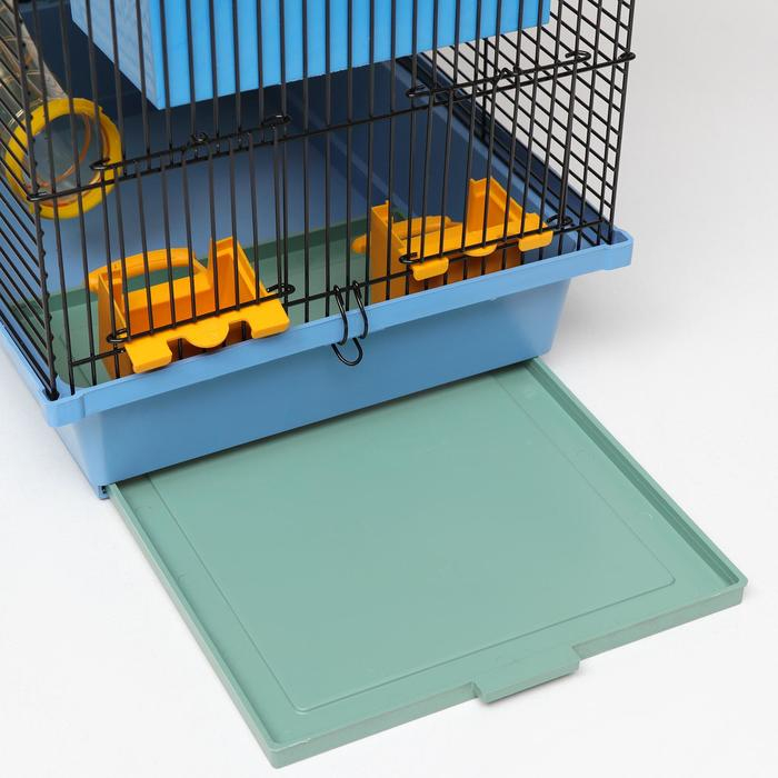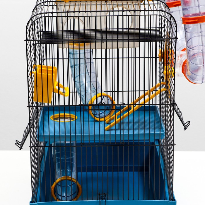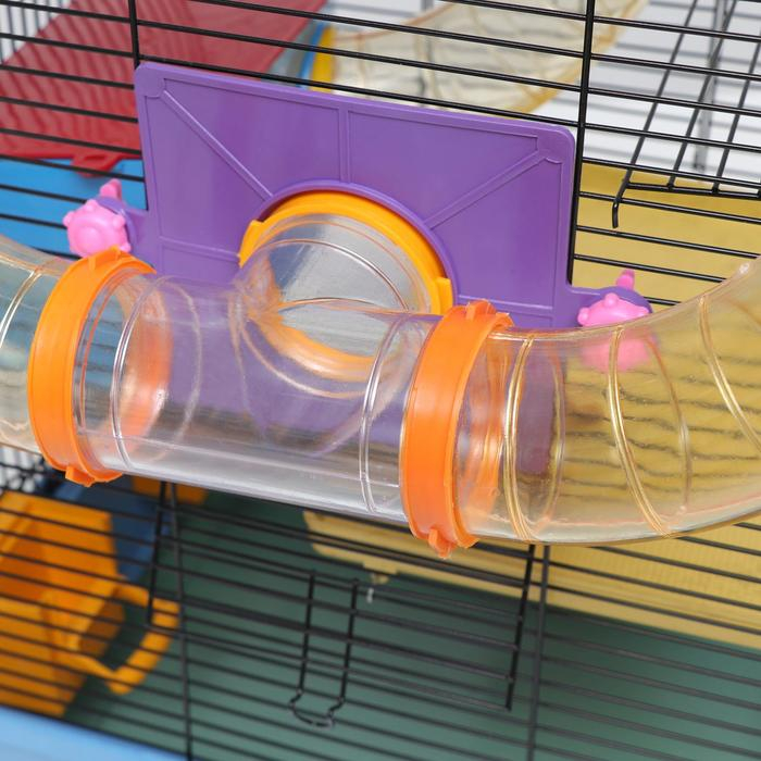 Клетка для грызунов трехярусная с лабиринтом и колесом, 39 x 29 х 64 см, микс цветов