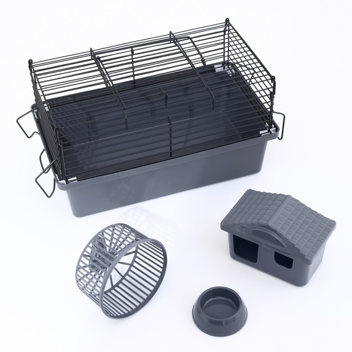 Клетка-мини для грызунов "Пижон" №1-1, с наполнением, 27 х 15 х 13 см, серая