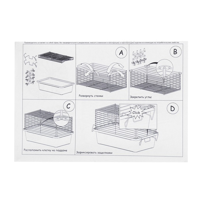 Клетка легко монтируется и очень удобна для хранения и транспортировки. Она идеально подходит для тех, кто живет в квартире и не имеет много места для большой клетки.