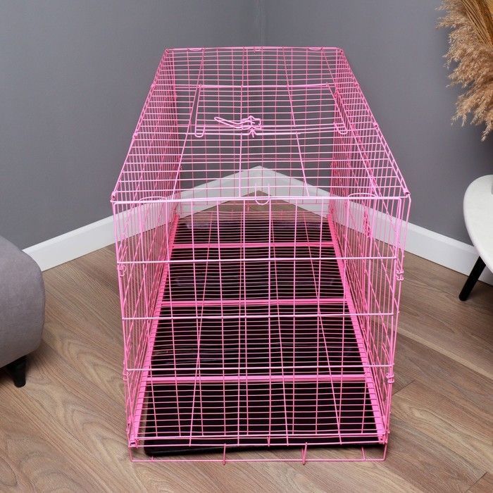 Клетка с люком для собак, 130 х 60 х 70 см, розовая