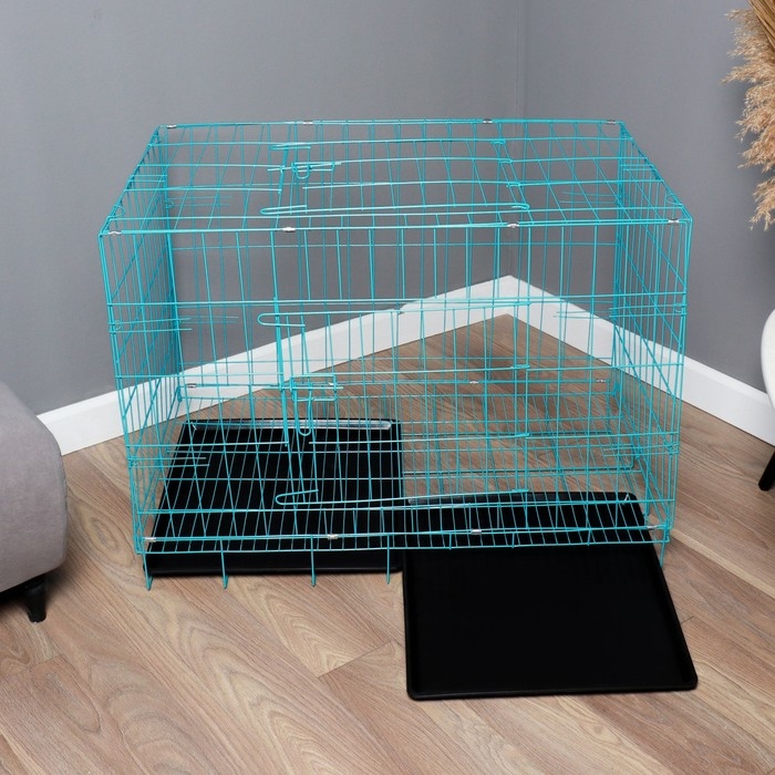 Клетка с люком для собак и кошек, 100 х 60 х 70 см, голубая