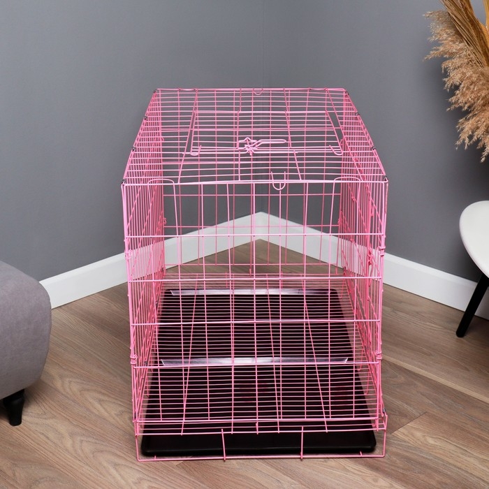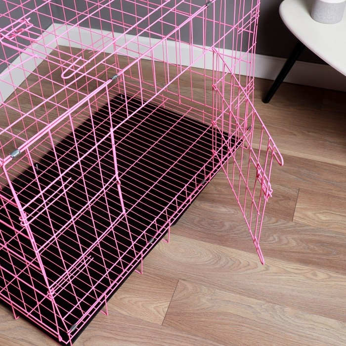 Клетка с люком для собак и кошек, 100 х 60 х 70 см, розовая