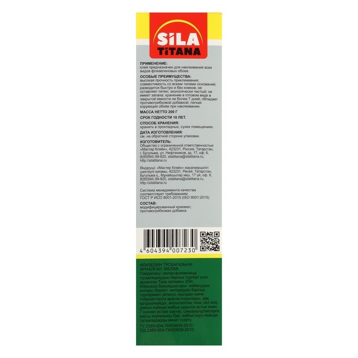 Клей обойный SILA TITANA, для флизелиновых обоев, коробка, 200 г