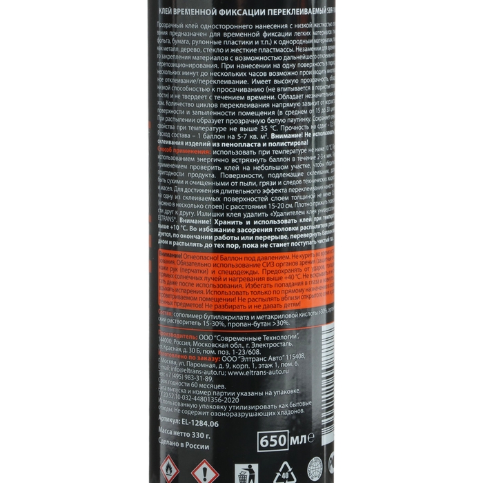 Клей универсальный Элтранс SBR-110, 650 мл, аэрозоль EL-1285.06