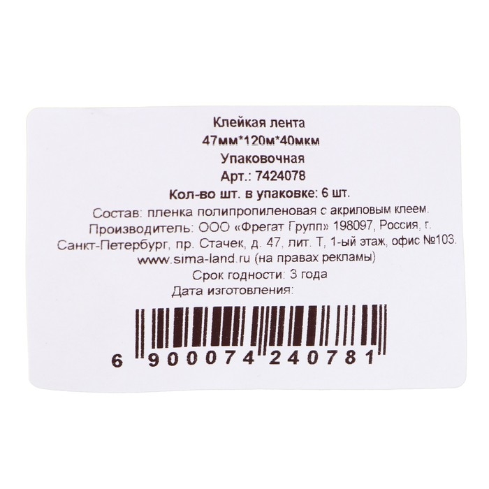 Состав: BOPP пленка, акриловый клей.