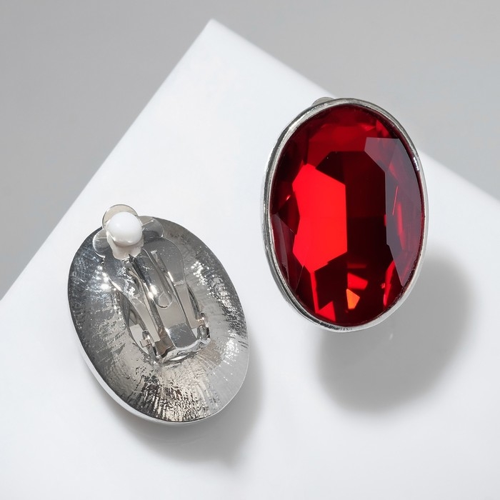 Клипсы «Вечеринка» овалы, цвет красный в серебре