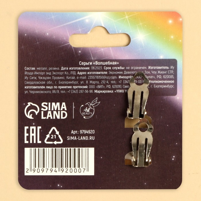 Клипсы «Волшебная» 1,5 х 1,5 см