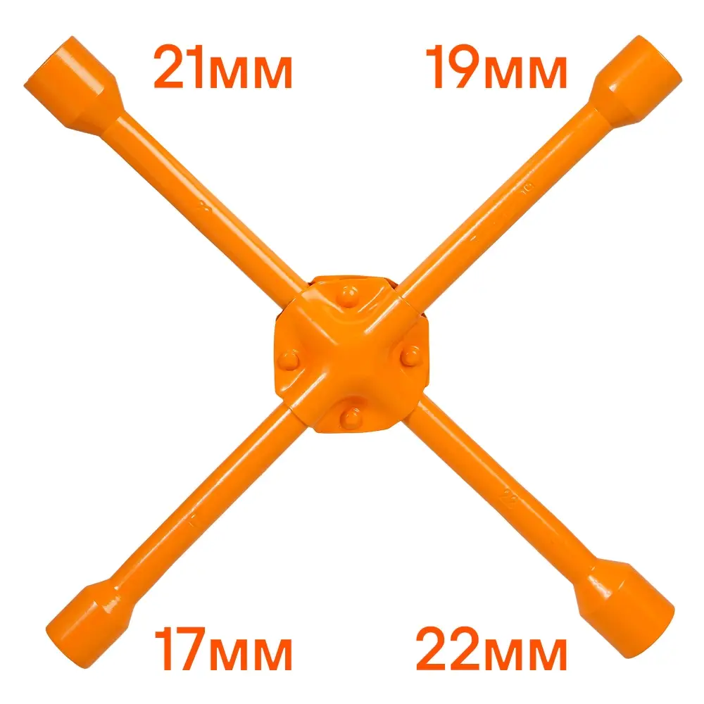 Ключ баллонный крестовой усиленный изготовлен из инструментальной стали. Имеет повышенный запас прочности. Предназначен для монтажа/демонтажа резьбовых соединений при замене колес на легковых автомобилях. Универсальность данного баллонного ключа заключается в наличии нескольких размеров, тем самым позволяя использовать ключ с большим количеством колесного крепежа. Абсолютно все баллонные ключи производятся по единой технологии на современных автоматизированных предприятиях. Тестирование каждого ключа происходит в собственной испытательной лаборатории в два этапа, что является залогом качества и надежности.