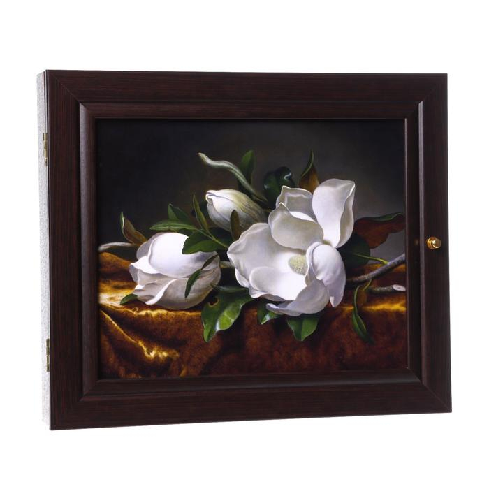 Ключница "Белые цветы" венге 26х31 см МИКС