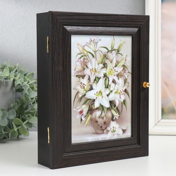 Ключница "Букет белых лилий" венге 19х24 см МИКС