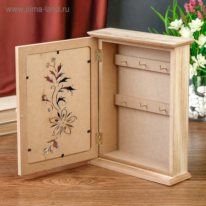 Ключница дерево 6 крючков "Бабочки на цветке" 25,5х6,5х20,5 см