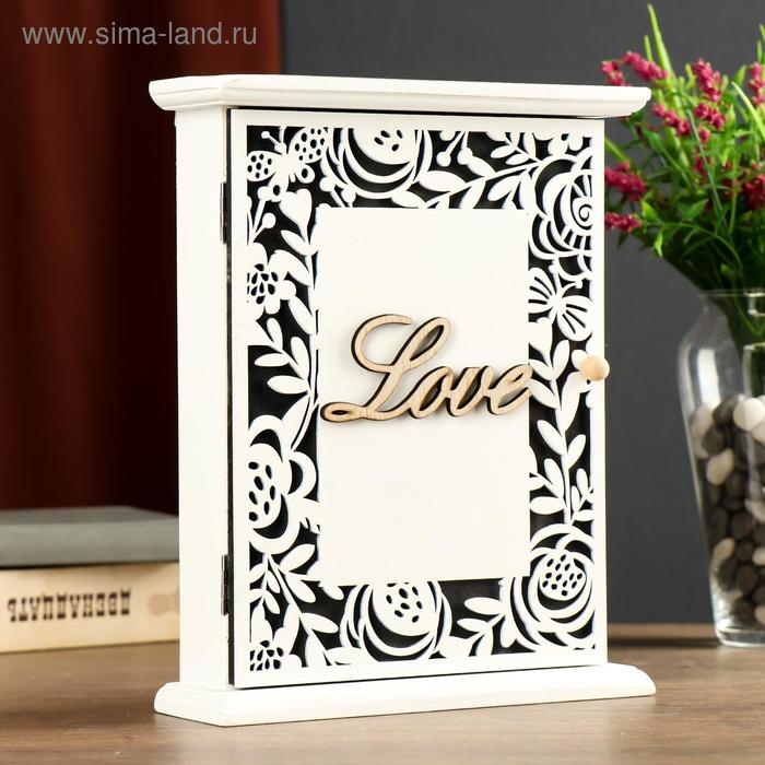 Ключница дерево 6 крючков "Цветы и бабочки. Love" 26,5х21х6,8 см