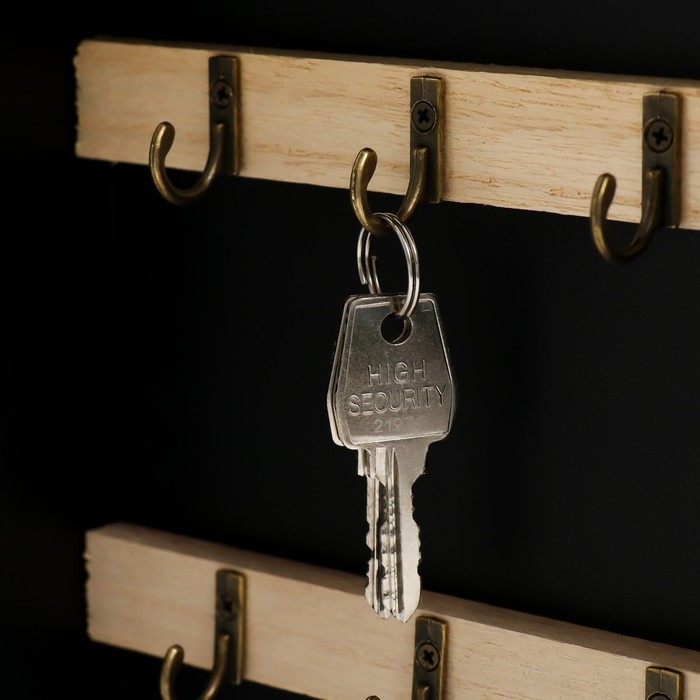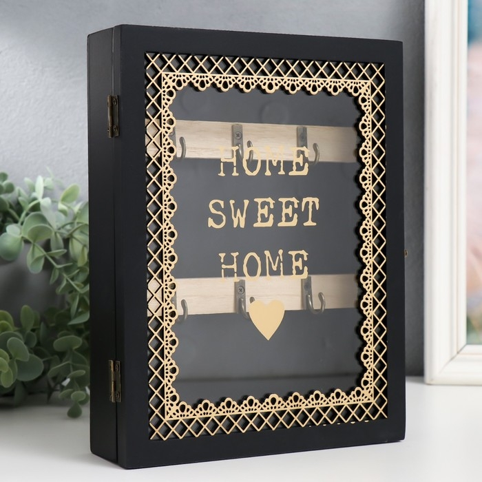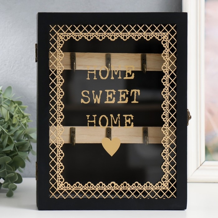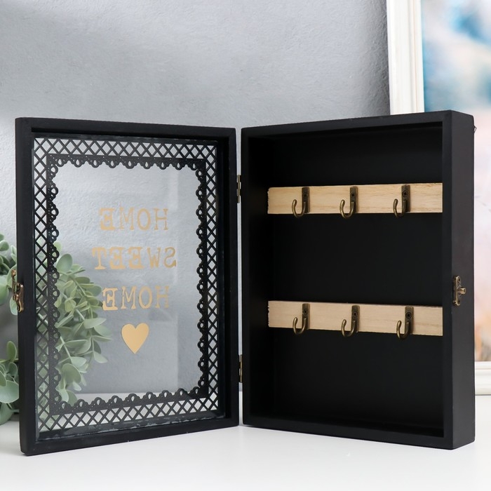 Ключница дерево 6 крючков "Дом, милый дом" чёрная 20х5,5х26 см