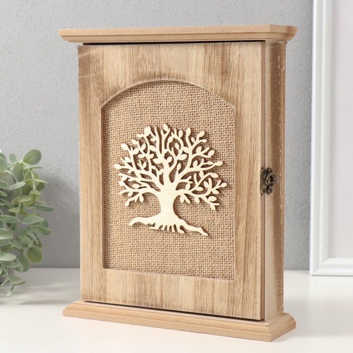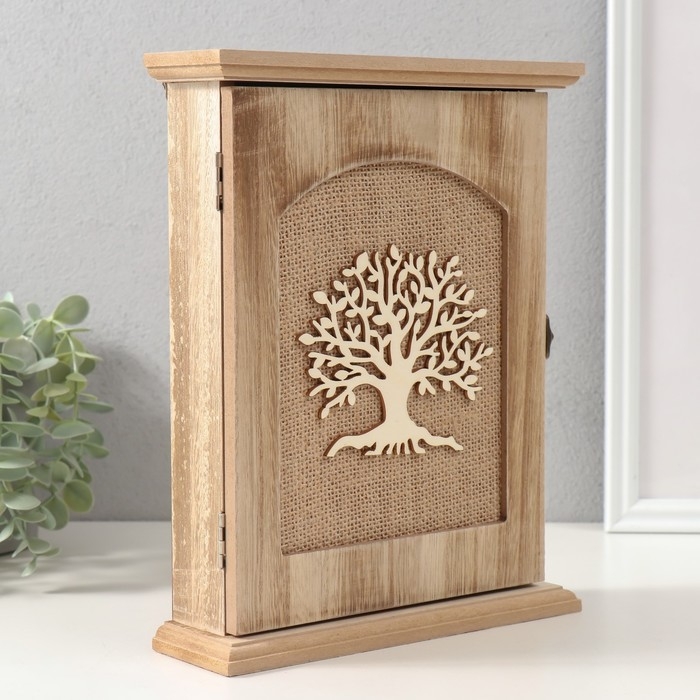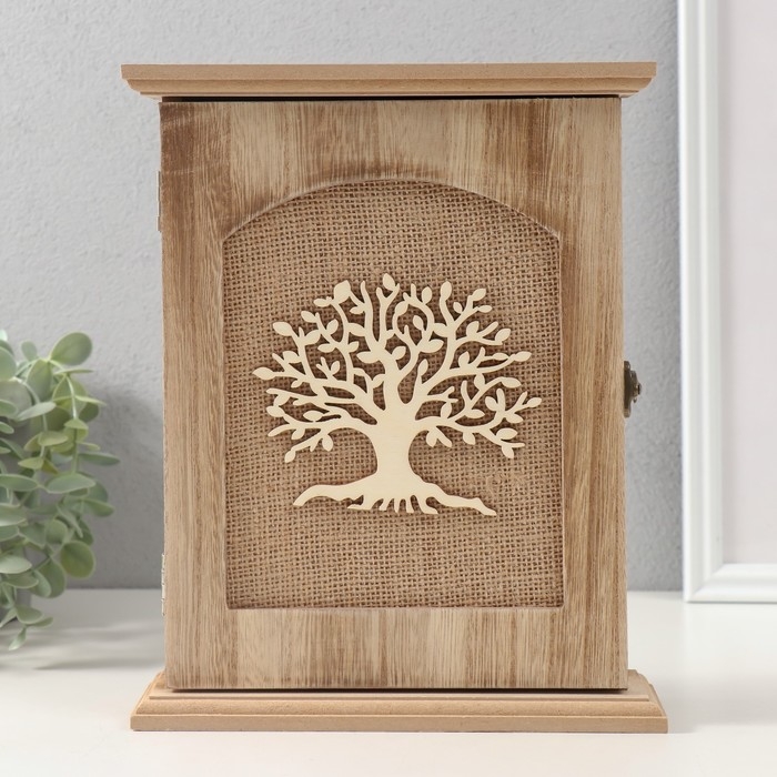 Ключница дерево 6 крючков "Древо жизни" мешковина 26,5х20,5х6 см