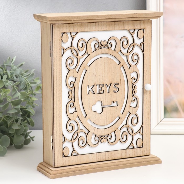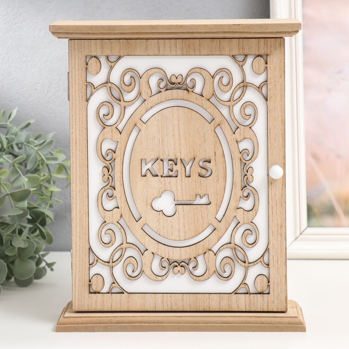 Ключница дерево 6 крючков "Ключик от дома" ажурная 21х6,9х26,5 см