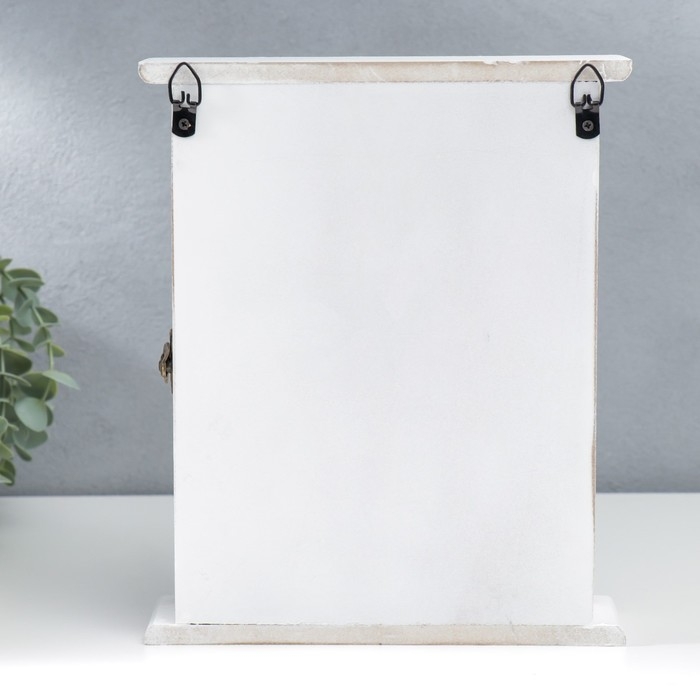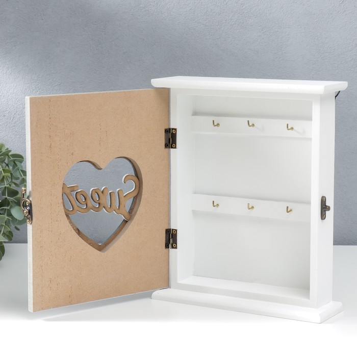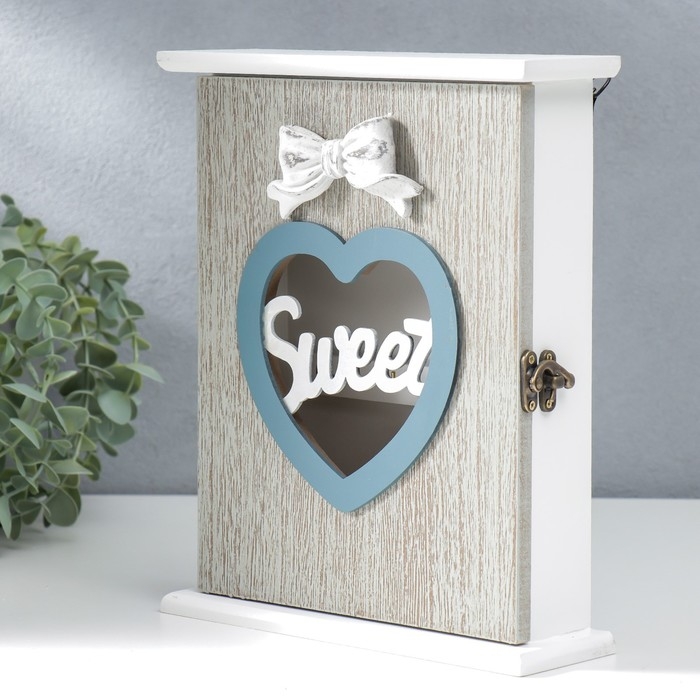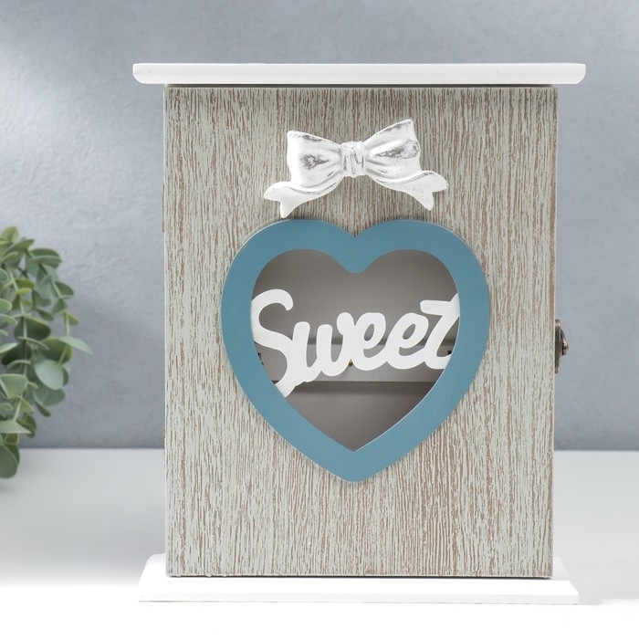Ключница дерево 6 крючков "Сердце и бант" серый 25,5х7х21 см