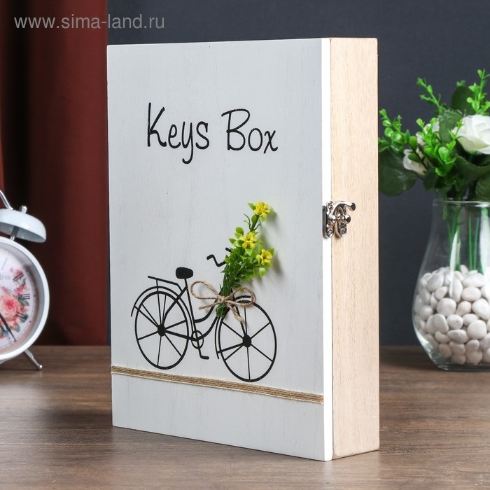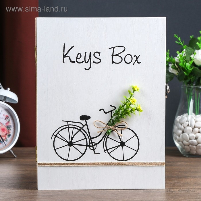 Ключница дерево 6 крючков "Велосипед с цветами" 26х19,5х5,5 см
