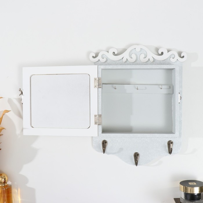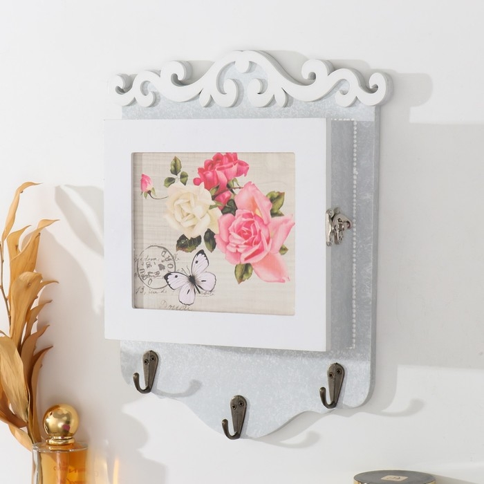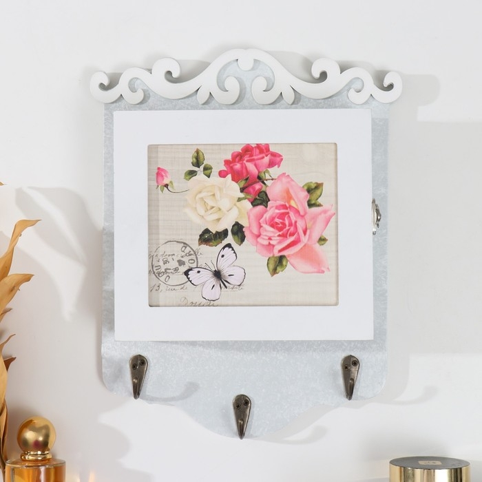 Ключница дерево "Бабочка с розами" белая 6х24х30 см