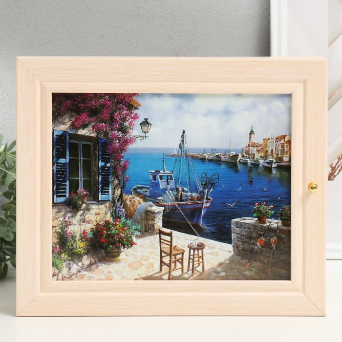 Ключница "Домик у причала" молочный дуб 26х31 см МИКС