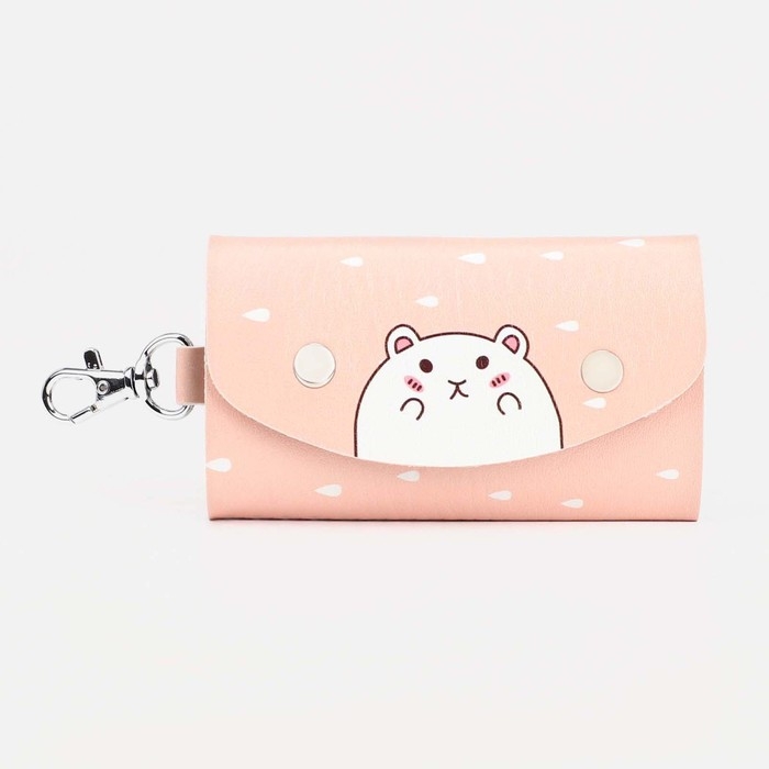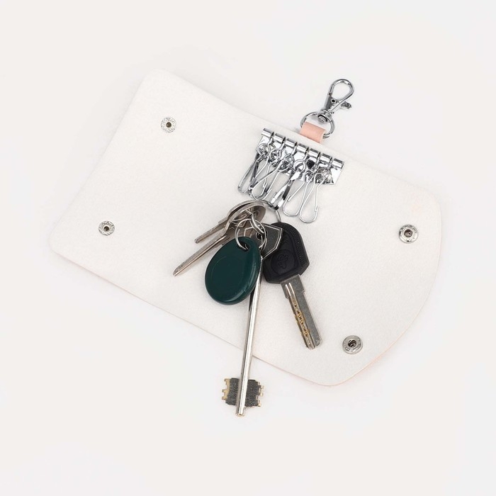 Ключница на кнопках, длина 10,8 см, 7 карабинов, цвет бежевый