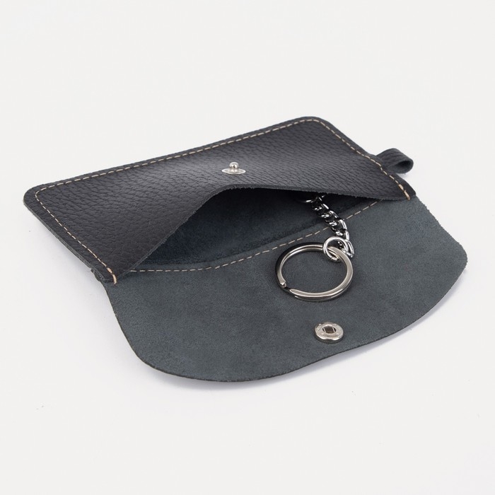 Ключница на кнопке, длина 13,5 см, кольцо, цвет чёрный