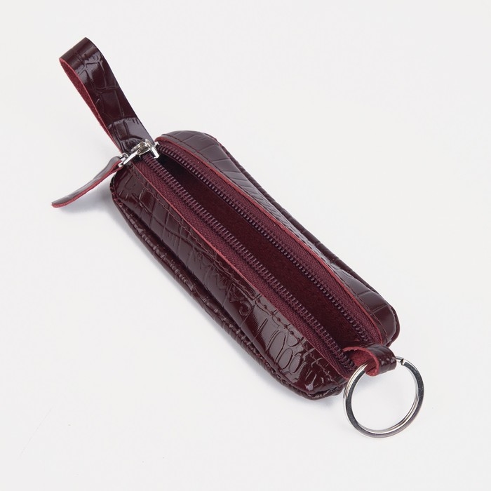 Ключница на молнии, длина 10 см, кольцо, цвет бордовый
