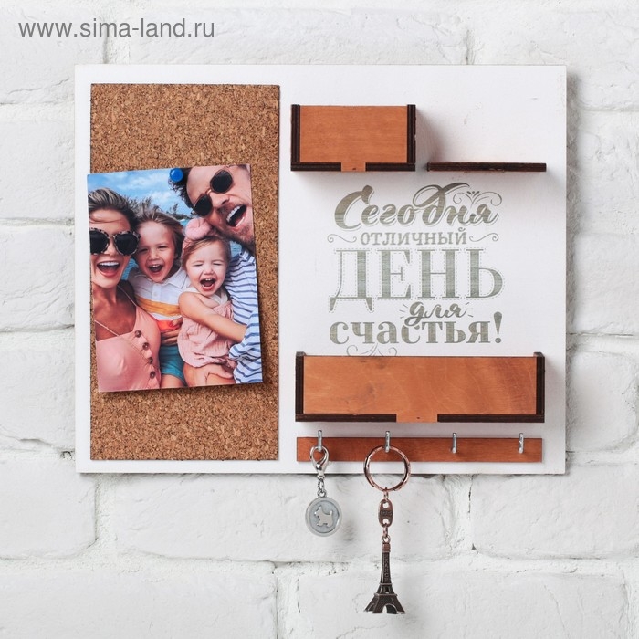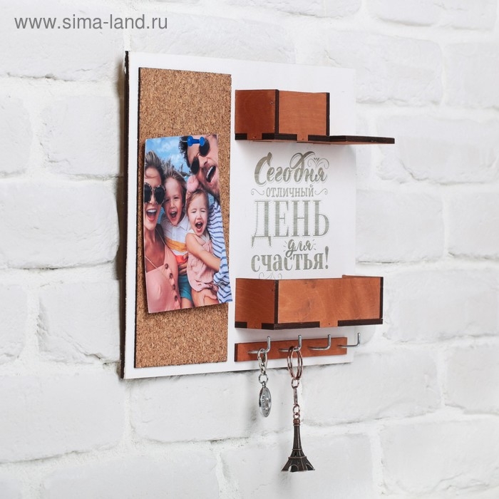 Ключница настенная с полкой и карманом «Сегодня отличный день», 25 х 30 см.