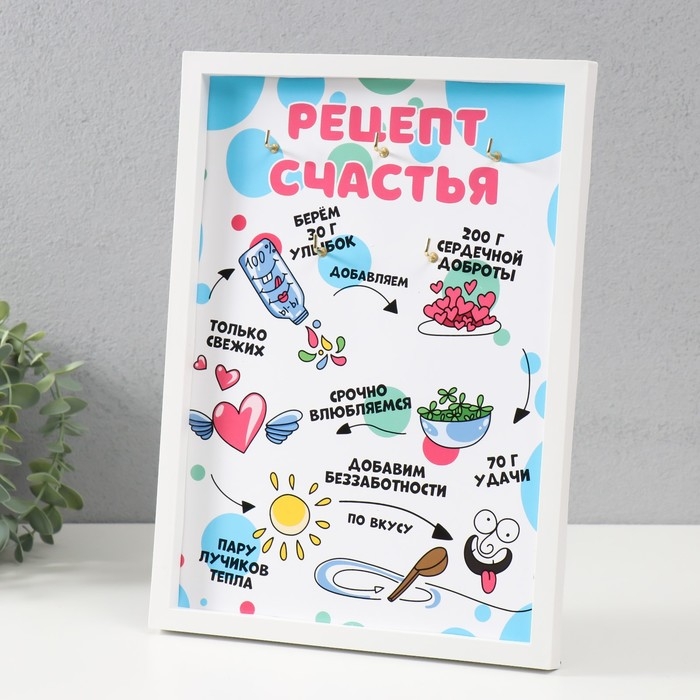 Ключница открытая "Рецепт счастья" 5 крючков, 23х32 см