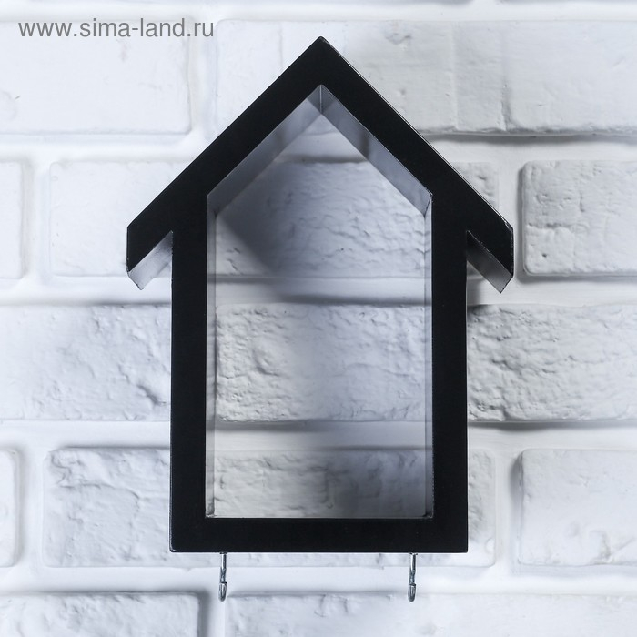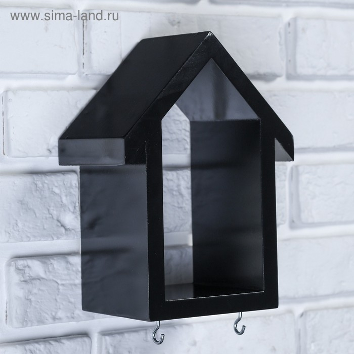 Ключница-полка Домик малая, 2 крючка, черная 23*17*10