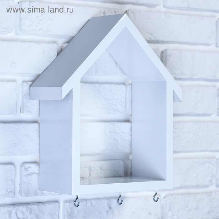 Ключница-полка Домик средняя, 3 крючка, белая, 29,5*25*10