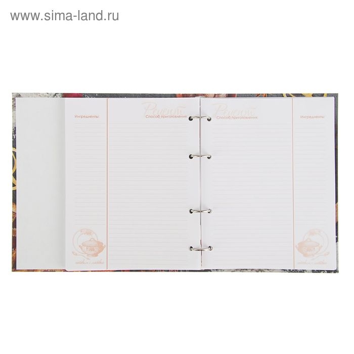 Книга для записи кулинарных рецептов А5, 80 листов на кольцах "Секреты кулинарии", твёрдая обложка, блок офсет, 5 цветов