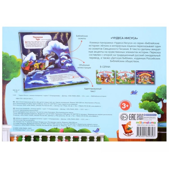 Книжка-панорамка «Чудеса Иисуса» из серии «Библейские истории» лёгким и интересным языком пересказывает один из сюжетов Священного Писания. В тексте сделаны аккуратные акценты на нравственных элементах истории. Пересказ составлен с опорой на традиционный русский синодальный перевод, а также «Детскую Библию», изданную Российским Библейским обществом.