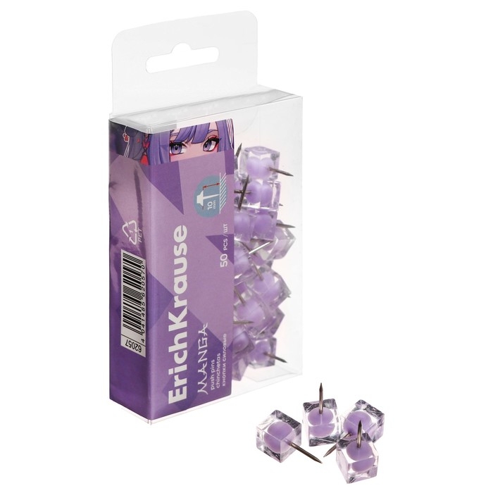 Кнопки силовые ErichKrause "Manga", 50 штук, сиреневые, в пэт-боксе