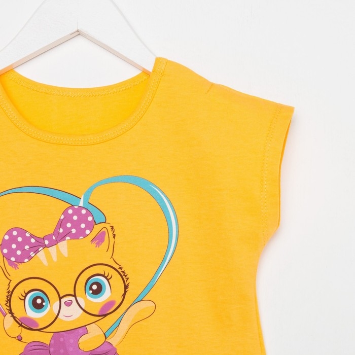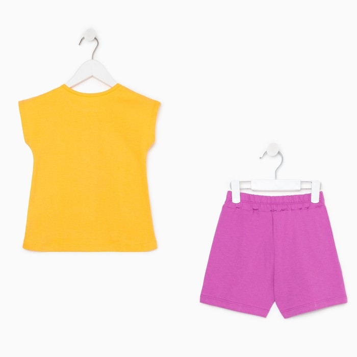 Коcтюм для девочки (туника, шорты), цвет жёлтый/сиреневый, рост 86 см