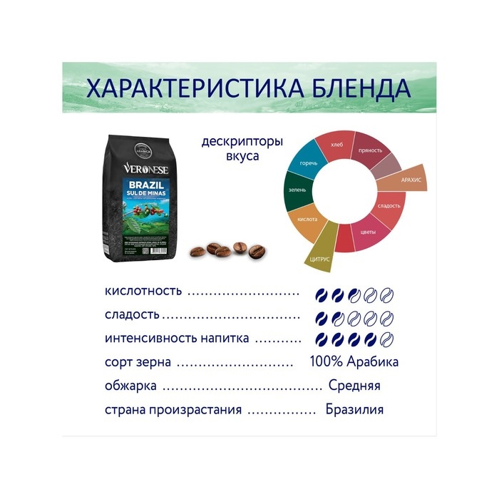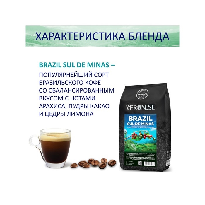 Кофе натуральный жареный в зёрнах, Veronese BRAZIL SUL DE MINAS, 1000 г