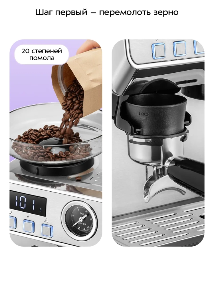 Кофейная станция кофеварка рожковая КТ-7694 (2 в 1)