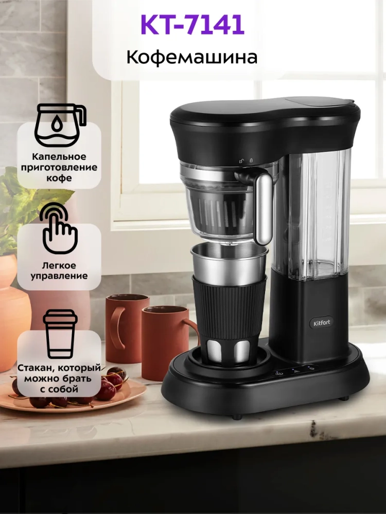 Кофеварка Китфорт КТ-7141 предназначена для приготовления кофе в домашних условиях или в офисе. Устройство занимает мало места, очень удобно для хранения.
