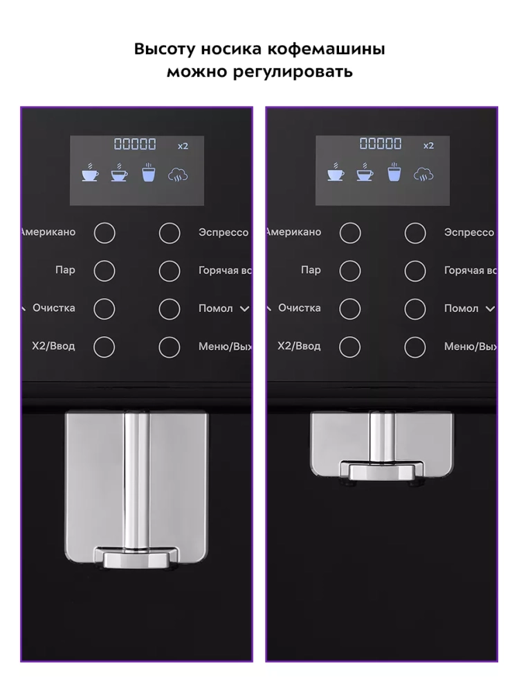 Высоту носика кофемашины можно регулировать, что очень удобно.