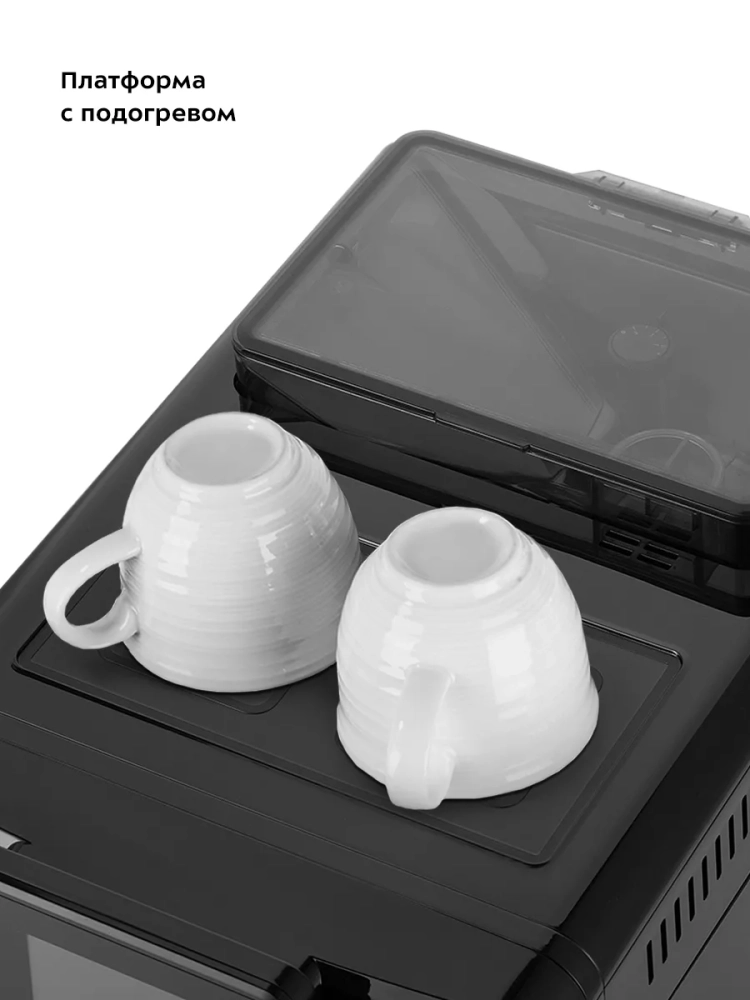 Платформа с подогревом не имеет своего нагревательного элемента, а нагревается от тепла, выделяемого при работе бойлера. На ней удобно располагать чашки, чтобы они успели согреться перед приготовлением напитка.