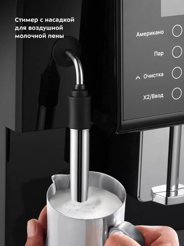 Кофемашина Китфорт KT-7182 позволяет настроить крепость кофе, объем и температуру кофе, а также время подачи пара. Также вы можете включить режим энергосбережения — через выбранное время, в течение которого кофемашина не будет использоваться, устройство отключится.