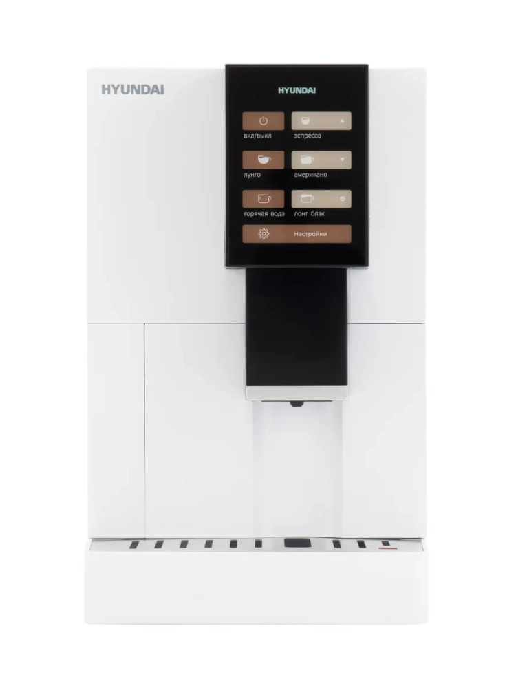 Кофемашина Hyundai HAM-4103 белый, мощность 1500Вт, используется молотый/зерновой кофе, давление помпы 19Бар, объем резервуара для воды 1.2л.