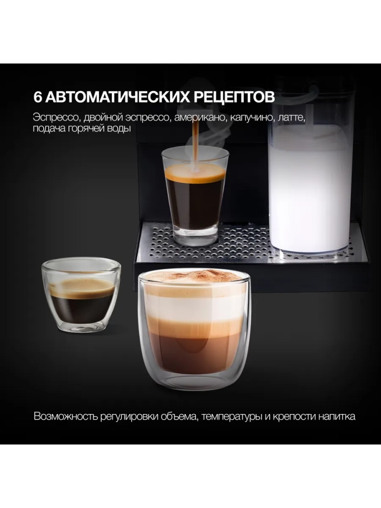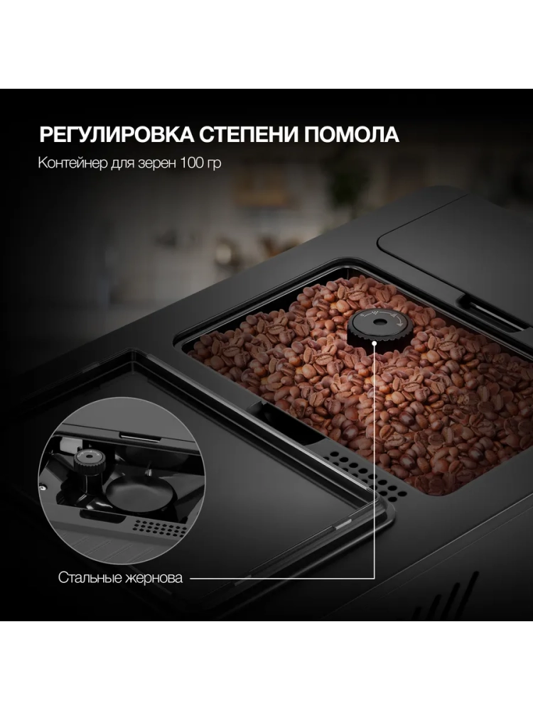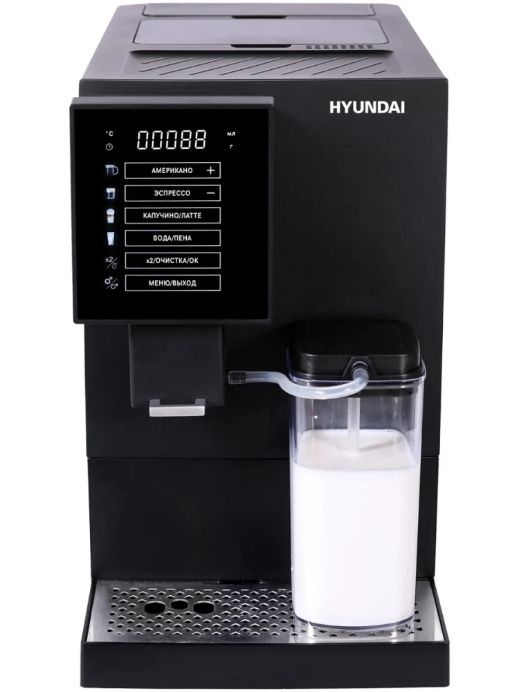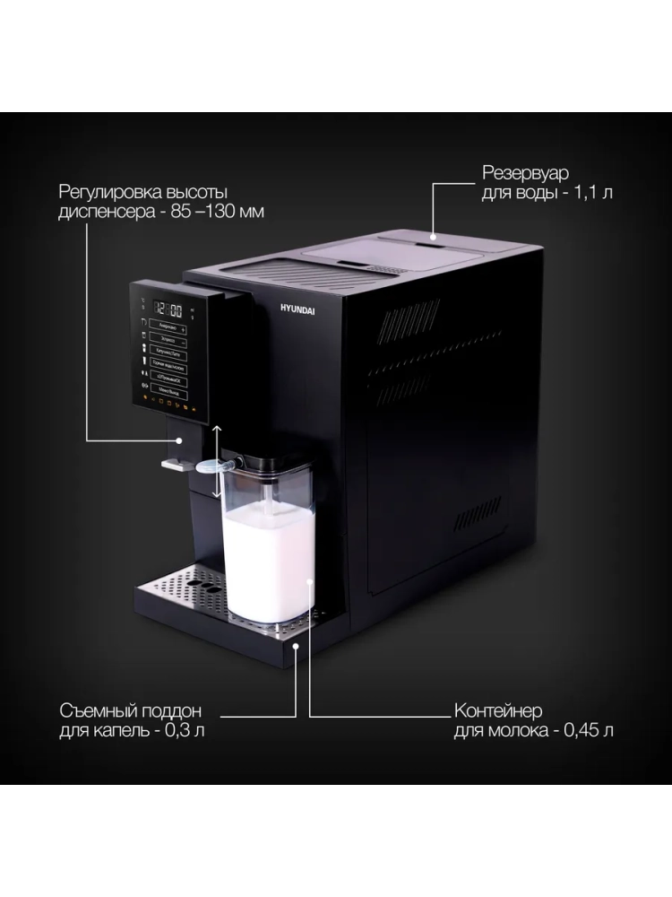 Кофемашина Hyundai HAM-5405 черный, мощность 1350Вт, используется зерновой кофе, давление помпы 20Бар, объем резервуара для воды 1.1л