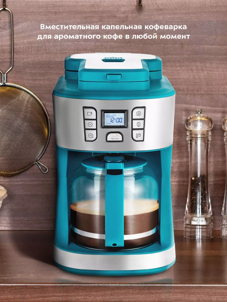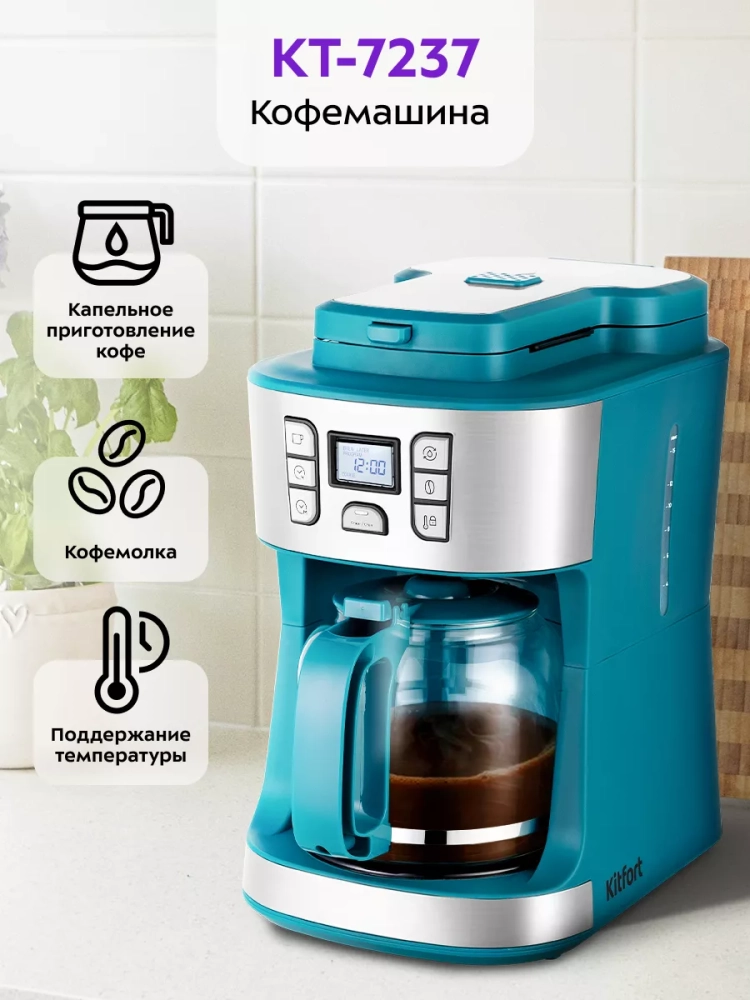 Кофемашина капельная с кофемолкой КТ-7237 - 1086 Вт