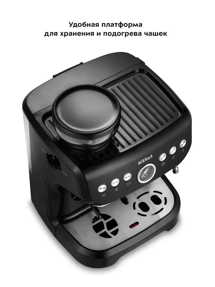 Кофемашина рожковая с жерновой кофемолкой КТ-7108 1560 Вт