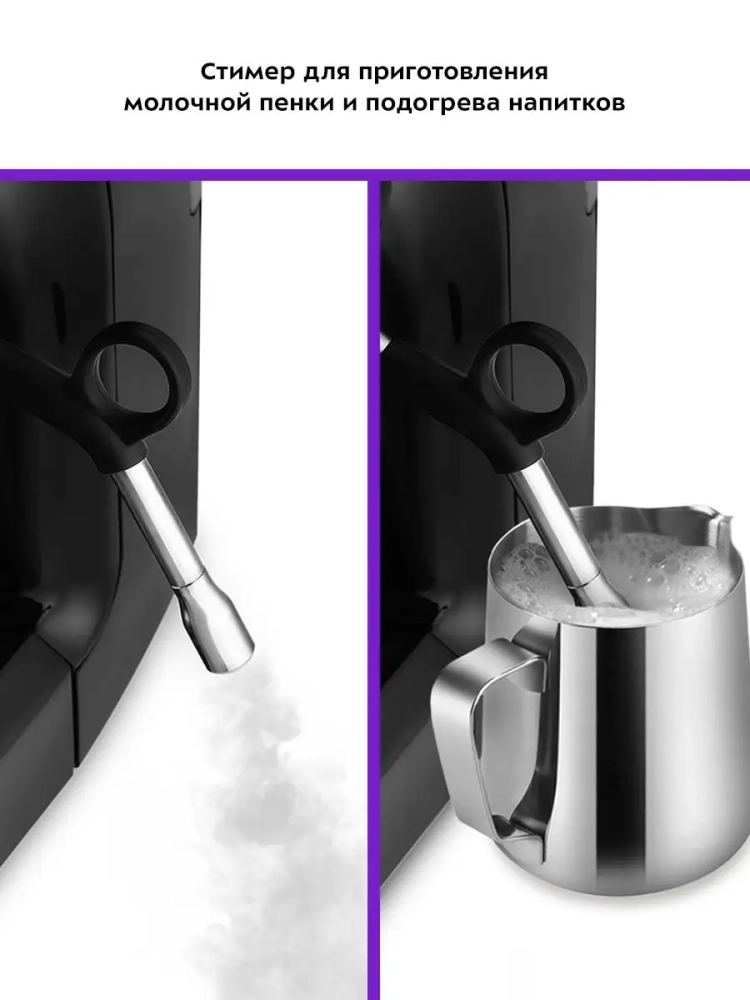 Кофейная станция поможет приготовить кофе эспрессо, капучино или латте, а также множество других видов кофе на ваш вкус. С помощью стимера вы можете приготовить молочную пенку, а также подогреть паром остывший чай или молоко.
