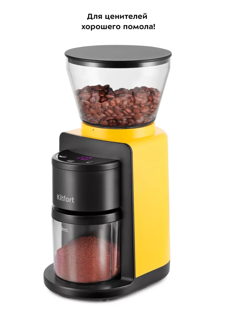 Жерновая кофемолка Kitfort КТ-7209 предназначена для помола кофейных зерен. Она оснащена коническими жерновами из нержавеющей стали.
